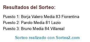 Lista de participantes: Bruno Media 84 Villareal, Parolo Media 81 Lazio, Borja Valero Media 83 Fiorentina.