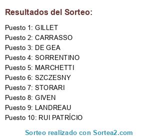 Lista de participantes: LANDREAU, SORRENTINO, RUI PATRÍCIO, GILLET, CARRASSO, STORARI, DE GEA, SZCZESNY, GIVEN, MARCHETTI.