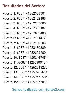 Resultados del sorteo: