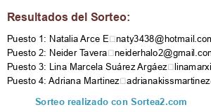 - Puesto 3: Lina Marcela Suárez Argáez linamarxis@gmail.com