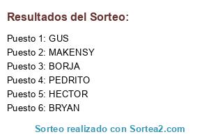 Lista de participantes: MAKENSY, HECTOR, GUS, BRYAN, BORJA, PEDRITO.