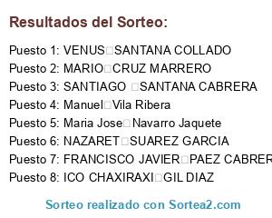 Resultados del sorteo: