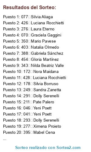 Lista de participantes: 001 Mónica Gallego, 002 María del Carmen Ergueta – Río Ceballos - 3543551547, 003 Melchor Plante, 004 Marcelo Yornet, 005 Melchor Plante, 006 Marcelo Yornet, 007 Mariana Jausoro, 008 Marcelo Yornet, 009 Delia lacasse, 010 Mónica Gallego, 011 Marcelo Castellano, 012 Norma Jaime, 013 Graciela Quevedo, 014 Cecilia García, 015 Jesica Formigo, 016 Marcelo Castellano, 017 Cecilia García, 018 Lali Avalle, 019 Norma Jaime, 020 Silvina Romera, 021 Mercedes Ulloque, 022 Miguel Rodriguez, 023 Ana del Vo, 024 Inés Bordet, 025 Francesca Orofino, 026 Mercedes Ulloque, 027 Jorge Coppa, 028 Mario Acebal, 029 Francesca Orofino, 030 Miguel Rodriguez, 031 Matilde Bonvin, 032 Mónica Gallego, 033 María M. Rios, 034 Melchor Plante, 035 Lucía Sanchez, 036 Mónica Gallego, 037 Matilde Bonvin, 038 Delia Lacase, 039 Lucía Sanchez, 040 Yeni Poett, 041 Yeni Poett, 042 Magdalena Silvero, 043 Virginia Rozza, 044 Paula González, 045 Silvina Romera, 046 Yeni Poett, 047 Laura Arias, 048 Laura Arias, 049 Mónica Racca, 050 Diana Torres, 051 Valeria Pavesio, 052 Belén, 053 Vicky Ribotta, 054 Matilde Bonvin, 055 Vicky Ribotta, 056 Belén, 057 Vicky Ribotta, 058 Julieta, 059 Mariquita Ergueta, 060 Carina, 061 Griselda Amuchástegui, 062 Mónica Gallego, 063 Claudia Massini, 064 Beatriz César, 065 Griselda Amuchástegui, 066 Beatriz César, 067 Griselda Amuchástegui, 068 Beatriz César, 069 Mónica Gallego, 070 Graciela Gaggini, 071 Mariela Perez, 072 Mariela Perez, 073 Mariela Perez, 074 Sivelina Soria, 075 Silfida Soria, 076 Mónica Racca, 077 Silvia Aliaga, 078 Ricardo Aliaga, 079 Ana Aliaga, 080 Valeria RODRÍGUEZ, 081 Pate Palero, 082 Milena Santiano, 083 Pate Palero, 084 Gabriel Duarte, 085 Pate Palero, 086 Gabriel Duarte, 087 Pate Palero, 088 Milena Santiano, 089 Pate Palero, 090 Gabriel Duarte, 091 Claudia Mattus, 092 Nilda Villani, 093 Claudia Mattus, 094 Marisela Cacho, 095 Alicia Mazzoni, 096 Marcelo Yornet, 097 Diana Torres, 098 Marcelo Yornet, 099 Graciela Espinola, 100 Mirta Baysre, 101 Inés Lasivita, 102 Marilú, 103 Yamila, 104 Clara, 105 María Elena, 106 Federico, 107 Clara, 108 María Elena, 109 Yamila, 110 Pablo, 111 Alicia Contreras, 112 Micaela Salas, 113 María José García, 114 Aurora Pilili, 115 Marisa García, 116 Silvana Bustos, 117 María L. Cortez, 118 Lito Casari, 119 Matilde Bonvin, 120 Claudia Scaricaciotoli, 121 Vivi Marchio, 122 Claudia Scari, 123 Griselda Elejalde, 124 Claudia Scrari., 125 Claudia Scari., 126 Claudia Scari., 127 Gabriel Mariani, 128 Gabriel Mariani, 129 Gabriel Mariani, 130 Claudia Scari., 131 Federico Bertero, 132 Marianela Restelli, 133 Marianela Restelli, 134 Marianela Restelli, 135 Marianela Restelli, 136 Marianela Restelli, 137 Lulu Formoni, 138 Lulu Formoni, 139 Federico Bertero, 140 Federico Bertero, 141 Claudia Alejandra ANGORA, 142 María Laura Moreno, 143 María Laura Moreno, 144 María Laura Moreno, 145 Mariana Sala, 146 Carlos Ignacio Luján, 147 Carlos Ignacio Luján, 148 Yesica Luján, 149 Yesica Luján, 150 Yesica Luján, 151 Claudia Parra, 152 Lore Ashworth, 153 Nano Zeballos, 154 Sole Zeballos, 155 Lore Ashworth, 156 Manu Zeballos, 157 Gabi Culasso, 158 Gabi Culasso, 159 Cielo Zeballos, 160 Claudia Parra, 161 Lila Far, 162 Lila Far, 163 Anabela Cerri, 164 Lila Far, 165 Mercedes Garzón, 166 Andrés Serrone, 167 Andrés Serrone, 168 Maricel Negrette, 169 Mercedes Garzón, 170 Andrés Serrone, 171 Gustavo Carrillo, 172 Nora Maidana, 173 Ernesto Ibañez, 174 Silvia Borruso, 175 César Calvo, 176 Matías Terán, 177 Silvia Borruso, 178 Silvia Borruso, 179 Violeta Carrillo, 180 César Calvo, 181 Luis Lattante, 182 Luis Lattante, 183 Luis Lattante, 184 Cristina Brizuela, 185 Cristina Brizuela, 186 Cristina Brizuela, 187 Fernando Lattante, 188 Fernando Lattante, 189 Fernando Lattante, 190 Lucia Rodriguez, 191 M. A. Sánchez, 192 Lucía Capriotti, 193 Flor Ordóñez, 194 M. A. Sánchez, 195 Flor Ordóñez, 196 Claudia Molina, 197 Marcos Luján, 198 Claudia Molina, 199 M. A. Sánchez, 200 Lucía Capriotti, 201 Cecilia Herrera, 202 Jesica Formigo, 203 Griselda Amuchástegui, 204 Cecilia Herrera, 205 Eli, 206 Griselda Amuchástegui, 207 Patricia Saibene, 208 Lali Avalle, 209 Silvia Vega, 210 Eli, 211 Pate Palero, 212 Pate Palero, 213 Isadora Goñi, 214 Majo García, 215 Pate Palero, 216 Pate Palero, 217 Silvia castillo, 218 Sandra Piccardo, 219 Silvia castillo, 220 Pate Palero, 221 Ma.Alejandra Bugna, 222 Ma Soledad De la Fuente, 223 David Lavaca, 224 David Lavaca, 225 Lucía Aguilera, 226 Olga Foncea, 227 Fernanda Libro, 228 Olga Foncea, 229 Marilina Hidalgo, 230 Olga Foncea, 231 Eugenia Tolosa, 232 Juan C. Sanchez, 233 Eugenia Tolosa, 234 Guillermo Hossly, 235 Lorena Romero, 236 Nora Limardo, 237 Nora Limardo, 238 Nora Limardo, 239 Aurelia Vallejo, 240 Nora Limardo, 241 Luciano Novarese, 242 Sandra Zanetta, 243 Luis Altamirano, 244 Valeria Pratto, 245 Jésica Planté, 246 Ariela Blanco, 247 Miriam Liascovitz, 248 Ariela Blanco, 249 Sandra Zanetta, 250 EriKa Aguirres, 251 Daniela Miranda, 252 María José Villa, 253 Nora Limardo, 254 Roxana Brarda, 255 Lorena Romero, 256 Lorena Romero, 257 Aurelia Vallejo, 258 Roxana Brarda, 259 Daniela Miranda, 260 Roxana Brarda, 261 Julian Micheletti, 262 Damiela Sanchez, 263 Daniela Sánchez, 264 Valeria Cuello, 265 Miriam Barrera, 266 Ana Aliaga, 267 Martín Micheletti, 268 Marisa Aragnon, 269 Graciela Milano, 270 Graciela Milano, 271 Romina Damele, 272 Ximena Proieto, 273 Romina Damele, 274 Romina Damele, 275 Agustina Urbano, 276 Laura Eterno, 277 Ximena Proieto, 278 Laura Eterno, 279 Laura Eterno, 280 Agustina Urbano, 281 Erika Briones, 282 Laura Arias, 283 Hernán Ashworth, 284 Leila Lafi, 285 Laila Lafi, 286 Erika Briones, 287 Hernán Ashworth, 288 Laura Arias, 289 Nora Cid, 290 Laura Arias, 291 Dolly Serenelli, 292 Dolly Serenelli, 293 Dolly Serenelli, 294 Dolly Serenelli, 295 Dolly Serenelli, 296 Dolly Serenelli, 297 Teresita Paz, 298 Teresita Paz, 299 Teresita Paz, 300 Teresita Pa