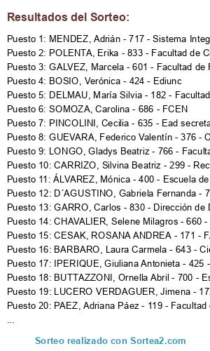 Resultados del sorteo:
