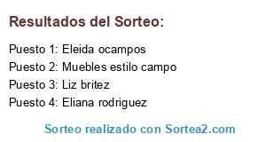 Lista de participantes: Eliana rodriguez, Eleida ocampos, Liz britez, Muebles estilo campo.