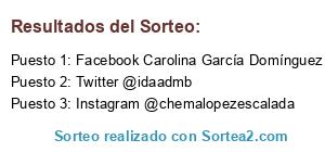 Se realizará el sorteo en las tres redes sociales, resultando 3 semifinalistas por cada una de ellas. Es decir, 1 en Facebook, 1 en Twitter y 1 en Instagram.<