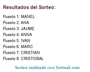 Lista de participantes: MANEL, CRISTOBAL, IVAN, CRISTIAN, ANNA, ANA, MARC, JAUME.