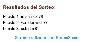Lista de participantes: subotic 81, m suarez 79, van der wiel 77.
