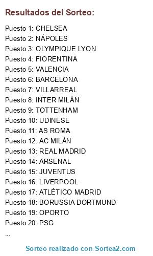 Resultados del sorteo: