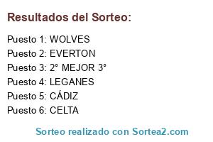 Lista de participantes: LEGANES, CÁDIZ, WOLVES, EVERTON, CELTA, 2° MEJOR 3°.