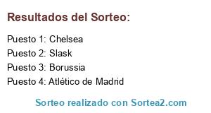 Lista de participantes: PSG, Newell's, Chelsea, Slask, Leicester, Borussia, Napoles, Depor, Atlético de Madrid, Wexford, Tottenham, Barcelona.