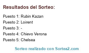 Lista de participantes: Loirent, Chelsea, Chievo Verona, Rubin Kazan, -.
