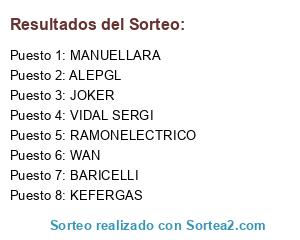 Lista de participantes: WAN, ALEPGL, BARICELLI, JOKER, RAMONELECTRICO, MANUELLARA, VIDAL SERGI, KEFERGAS.
