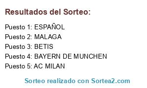Lista de participantes: BAYERN DE MUNCHEN, VALENCIA, NEWCASTLE, ARSENAL, AC MILAN, SHALKE04, BETIS, PSG, INTER, BILBAO, MALAGA , RAYO, ESPAÑOL, BARÇA.