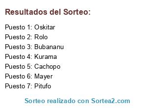 Lista de participantes: Bubananu, Cachopo, Kurama, Mayer, Oskitar, Pitufo, Rolo.