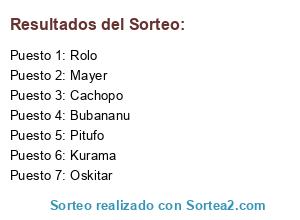Lista de participantes: Bubananu, Cachopo, Kurama, Mayer, Oskitar, Pitufo, Rolo.
