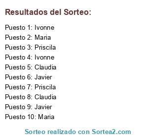 Lista de participantes: Javier, Claudia, Priscila, Ivonne, Maria, Javier, Claudia, Priscila, Ivonne, Maria.