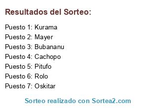 Lista de participantes: Bubananu, Cachopo, Kurama, Mayer, Oskitar, Pitufo, Rolo.