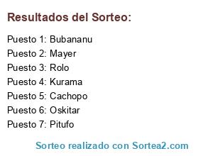 Lista de participantes: Bubananu, Cachopo, Kurama, Mayer, Oskitar, Pitufo, Rolo.