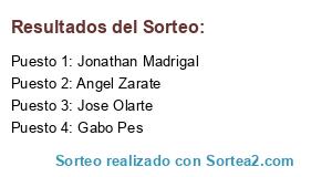 Lista de participantes: Gabo Pes, Angel Zarate, Jonathan Madrigal, Jose Olarte.