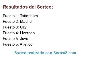 Lista de participantes: Madrid, Atlético, Juve, Liverpool, Tottenham, City.