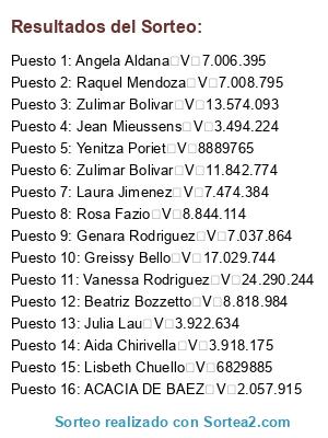 Resultados del sorteo: