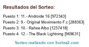 Lista de participantes: 13.- Ñiupi_Fc (969242), (332 690)., 14.- Mera's (701761), (318 700)., 15.- Deportivo Rahue S.A. (972147), (309 560)., 16.- Real Castro CF (702436), (299 790)., 17.- Semillero del Hombre Nuevo (701624), (279 950)., 18.- Usorno azul (1239629), (255 070)..