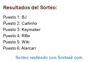Lista de participantes: Rifle, Carlinho, Alarcarr, BJ, Wiki, Keymaker.