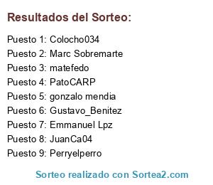 Lista de participantes: Emmanuel Lpz, PatoCARP, Colocho034, matefedo, gonzalo mendia, JuanCa04, Gustavo_Benitez, Perryelperro, Marc Sobremarte.