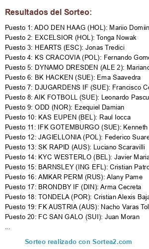 Tipo de sorteo: Jugadores de fútbol
