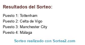 Lista de participantes: Málaga, Manchester City, Celta de Vigo, Tottenham.
