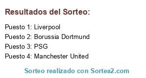 Lista de participantes: Borussia Dortmund, Manchester United, Liverpool, PSG.