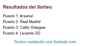 Lista de participantes: Levante UD, Real Madrid, Arsenal, Celtic Glasgow.