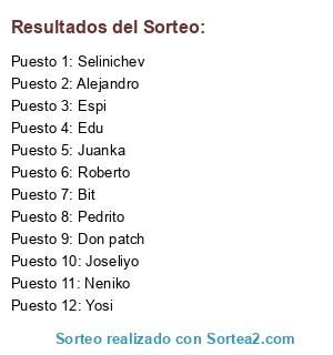 Lista de participantes: Bit, Pedrito, Roberto, Neniko, Alejandro, Edu, Don patch, Joseliyo, Yosi, Espi, Selinichev, Juanka.