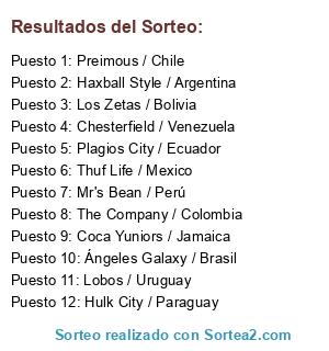 Lista de participantes: Preimous / Chile, Haxball Style / Argentina, Ángeles Galaxy / Brasil, Lobos / Uruguay, The Company / Colombia, Plagios City / Ecuador, Thuf Life / Mexico, Hulk City / Paraguay, Coca Yuniors / Jamaica, Mr's Bean / Perú, Los Zetas / Bolivia, Chesterfield / Venezuela.