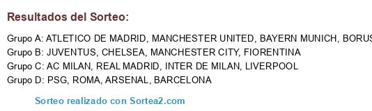 Resultados del sorteo: