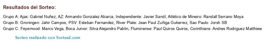 Lista de participantes: SHARKTAR, MALAGA, SPORTING DE LISBOA, OPORTO, EVERTON, VILLAREAL, LAZIO, MARSELLA, VALENCIA, LYON, ATLETICO, ASTON VILA, NAPOLES, SEVILLA, BAYER, FIORENTINA, LIVERPOOL, TOTEHAM, ARSENAL, CITY, ROMA, JUVENTUS, UNITED, MILAN, CHELSEA, INTER, MADRID, BARSA.