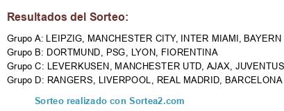 Lista de participantes: BARCELONA, REAL MADRID, LIVERPOOL, DORTMUND, LEVERKUSEN, MANCHESTER CITY, BAYERN MUNICH, INTER MIAMI, PSG, LYON, MANCHESTER UTD, LEIPZIG, AJAX, RANGERS, JUVENTUS, FIORENTINA.