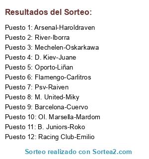 Resultados del sorteo: