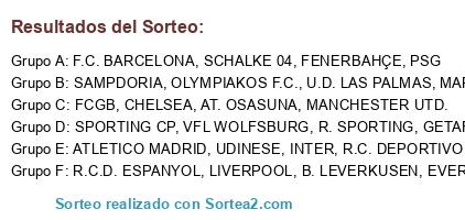 Lista de participantes: PSG, B. LEVERKUSEN, U.D. LAS PALMAS, OLYMPIAKOS F.C., R.C.D. ESPANYOL, EVERTON, SPORTING CP, FENERBAHÇE, SAMPDORIA, VFL WOLFSBURG, INTER, SCHALKE 04, F.C. BARCELONA, LIVERPOOL, ATLETICO MADRID, CHELSEA, MANCHESTER UTD., R. SPORTING, UDINESE, AT. OSASUNA, MARSEILLE, GETAFE, R.C. DEPORTIVO, FCGB.