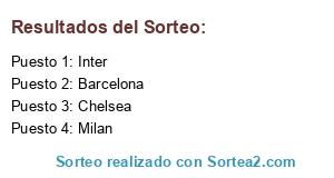 Lista de participantes: Inter, Chelsea, Barcelona, Milan.