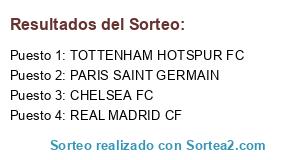 Lista de participantes: PARIS SAINT GERMAIN, CHELSEA FC, REAL MADRID CF, TOTTENHAM HOTSPUR FC.
