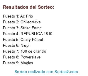Lista de participantes: 100 de cilantro, Ac Frio, Chilecr4cks, Crazy Fútbol, Magios, Niupi, Powerslave, REPUBLICA 1810, Strike Force.