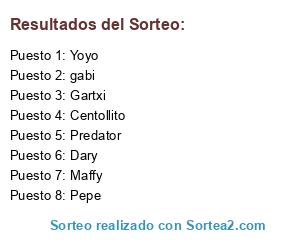 Lista de participantes: Gartxi, Centollito, gabi, Maffy, Pepe, Dary, Yoyo, Predator.