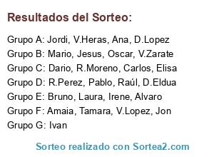 Lista de participantes: Alvaro, Amaia, Ana, Bruno, Carlos, Dario, D.Lopez, D.Eldua, Elisa, Irene, Jesus, Jordi, Laura, Mario, Pablo, Raúl, R.Moreno, R.Perez, Tamara, V.Heras, V.Lopez, Oscar, Ivan, Jon, V.Zarate.