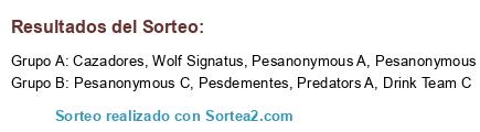 Lista de participantes: Predators A, Wolf Signatus, Pesanonymous C, Pesdementes, Cazadores, Drink Team C, Pesanonymous A, Pesanonymous D.