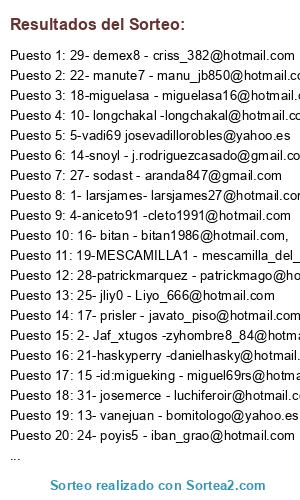 - Puesto 26: 32- juanjo84 - pikopes@hotmail.com