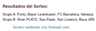 Lista de participantes: San Lorenzo, FC Barcelona, River PLATE, Boca JRS., Bayer Leverkusen, Sao Paulo, Venezia, Porto.
