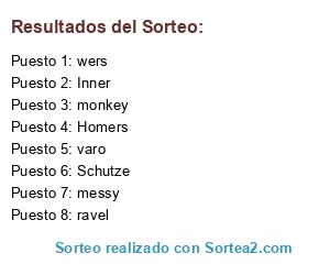 Lista de participantes: Inner, Homers, wers, ravel, varo, monkey, messy, Schutze.