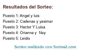 Lista de participantes: Leidis, Orianna y Nay, Hector Y Luisa, Cadenas y yasimar, Angel y luis.